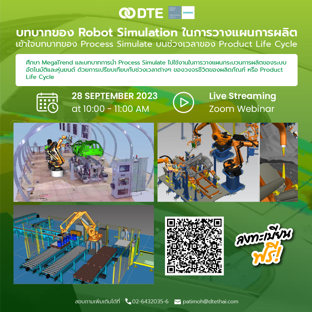 ศึกษา MegaTrend และบทบาทการนำ Process Simulate ไปใช้งานในการวางแผนกระบวนการผลิตของระบบอัตโนมัติและหุ่นยนต์ ด้วยการเปรียบเทียบกับช่วงเวลาต่างๆ ของวงจรชีวิตของผลิตภัณฑ์ หรือ Product Life Cycle