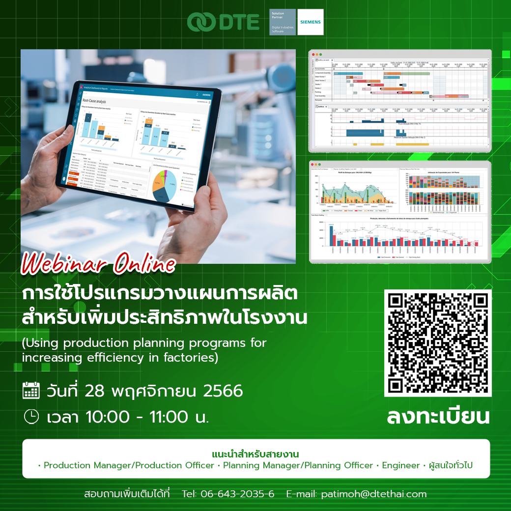 สัมมนาออนไลน์การใช้โปรแกรมวางแผนการผลิต สำหรับเพิ่มประสิทธิภาพในโรงงาน