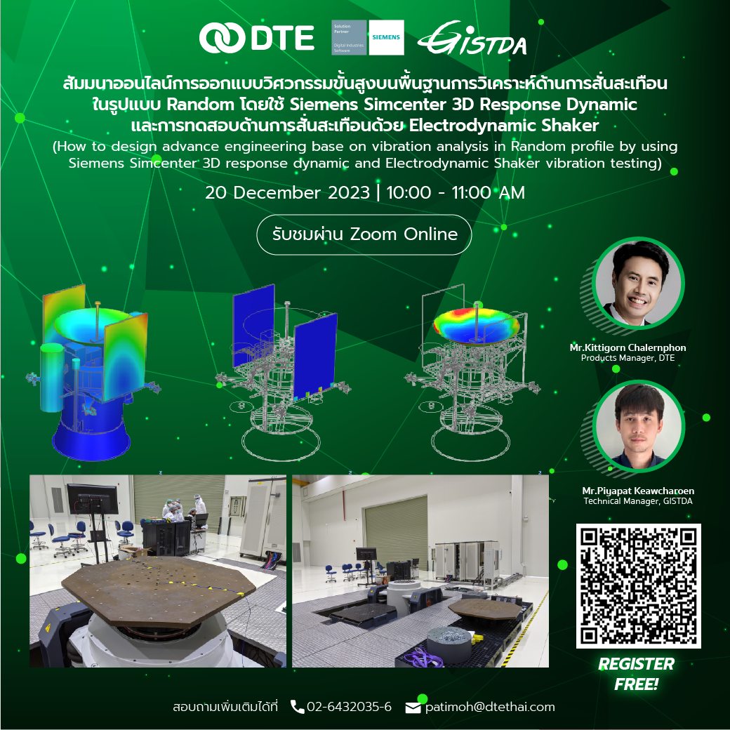 สัมมนาออนไลน์การออกแบบวิศวกรรมขั้นสูงบนพื้นฐานการวิเคราะห์ด้านการสั่นสะเทือนในรูปแบบ Random โดยใช้ Siemens Simcenter 3D Response Dynamic และการทดสอบด้านการสั่นสะเทือนด้วย Electrodynamic Shaker