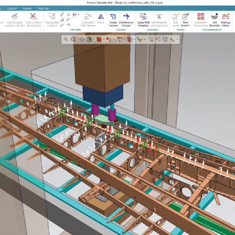 ซอฟต์แวร์ Tecnomatix Process Simulate สามารถทําการจําลองเพื่อตรวจสอบการเคลื่อนไหวของงาน CAD 3D ได้ทั้งแบบ Static และแบบ Dynamic สามารถกําหนดกลไกการเคลื่อนไหว (Kinematics) ให้กับไฟล์ CAD 3D ได้ เช่น Robot, Jig & Fixture, Clamp, Turntable, Lift, Conveyor รวมไปถึงเครื่องจักรต่าง ๆ เป็นต้น Tecnomatix Process Simulate สามารถรองรับงาน CAD 3D ได้ทั้งจากไฟล์ JT, DXF, IDI IN, IGES, STL IN, STEP & CatiaV5 ซึ่งตัวซอฟต์แวร์ เองก็ยังสามารถขึ้นรูป (Modeling) และสามารถแก้ไขงาน CAD พื้นฐานที่ไม่ซับซ้อนได้ทั้งแบบ 2D และแบบ 3D สามารถทําการแก้ไข (Edit) งาน CAD 3D ได้ในเบื้องต้น เช่น Extrude, Revolute, Scale Object, Unite, Subtract, Mirror, Explode Geometry เป็นต้น