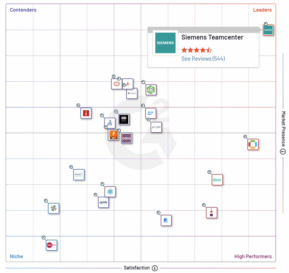 G2 จัดอันดับให้ Teamcenter เป็น PLM อันดับ 1 ในปี 2024 จากการจัดอันดับจาก G2, Teamcenter คือซอฟต์แวร์ PLM อันดับ 1 จากรีวิวของลูกค้า G2 ได้ยกให้ Teamcenter เป็นซอฟต์แวร์ PLM ที่ดีที่สุดสำหรับทุกขนาดของบริษัท ลองดูกราฟเปรียบเทียบซอฟต์แวร์ PLM เพื่อเรียนรู้เพิ่มเติม